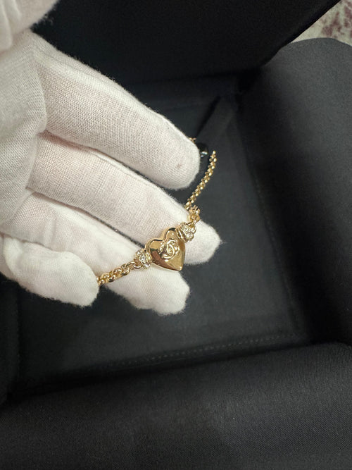 This Medium Sweetheart Crush flap bag is in Green caviar leather with antique gold tone hardware, a front flap with CC turnlock closure, half moon back pocket and an interwoven antique gold tone chain link adjustable crossbody strap. The interior is...