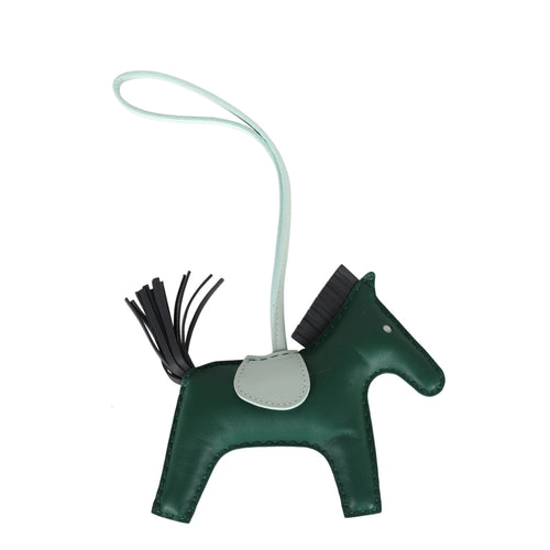Hermes Rodeo Bag Charm MM Vert Moyen/Ardoise/Vert Peppermint Milo Lambskin