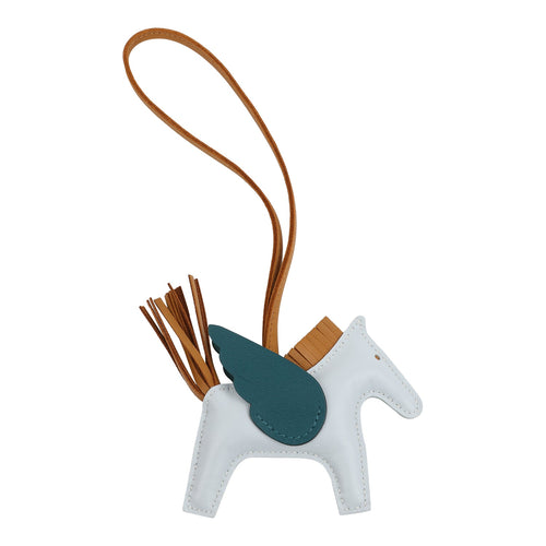 This Pegasus Rodeo Bag Charm PMis in Sesame, Vert Bosphore and Bleu Brume in swift and Milo lambskin leather and is accented with Sesame mane, tail, eyes, loop and Vert Bosphore wings. Origin: FranceCondition: New and never wornAccompanied by: Hermes box and ribbonMeasurements: 3.5" width x...