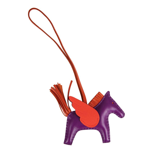 This Pegasus Rodeo bag charm is in Violet Milo lambskin leather and accented with a Cornaline mane, tail and holder and Capucine wings.