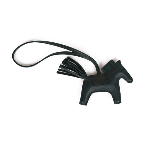 This Grigri Rodeo bag charm is in Vert Cypress Milo lambskin leather and matching mane, tail, saddle and holder.