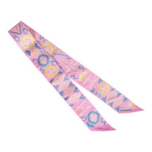 Hermes "Grand Tralala" Rose Poudre Silk Twilly