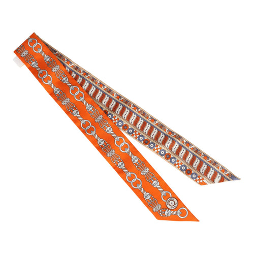 Hermes "Harnais En Rosace" Orange Silk Twilly