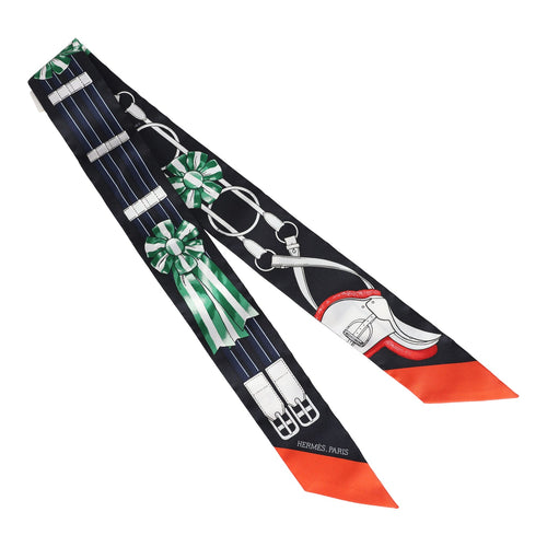Hermes "Jumping" Noir Silk Twilly