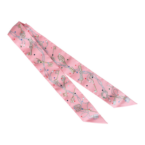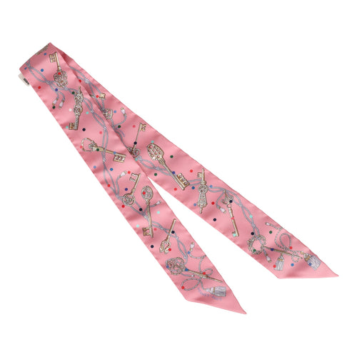Hermes "Les Cles A Pois" Rose Multi Silk Twilly
