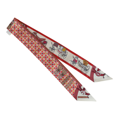 Hermes "Les Voitures Nouvelle" Vanille/Grenadine Silk Twilly Pair