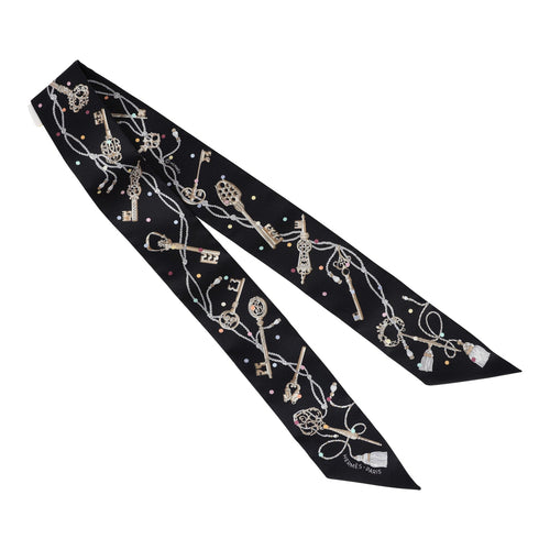 Hermes "Les Cles A Pois" Noir Silk Twilly
