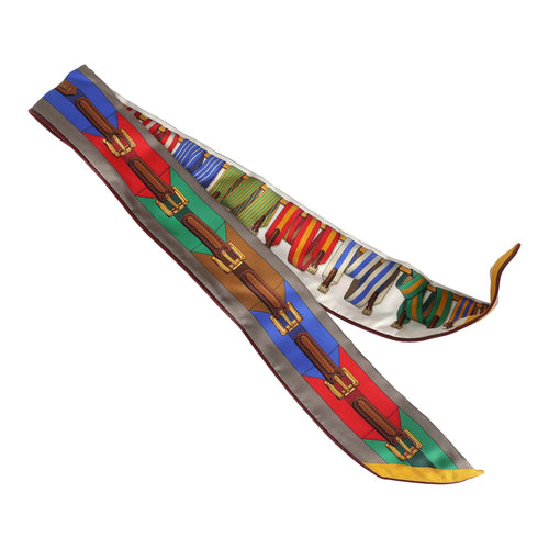 Hermes "Les Sangles" Forever Vert, Miel and Rouge Multi Silk Twilly