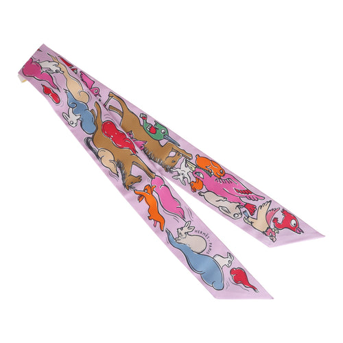 Hermes "Mille et Un Lapins" silk twilly in a pink multi colorway.Designed by Shinsuke Kawahara