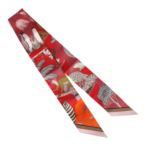 Hermes "Precious Paradise" Rouge Multi Silk Twilly