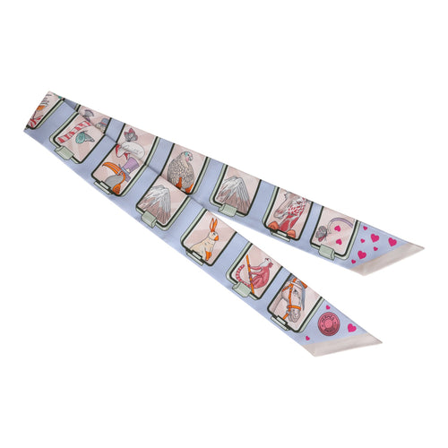 Hermes "Story" Bleu Pâle, Rose, Vert Silk Twilly