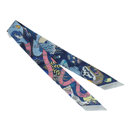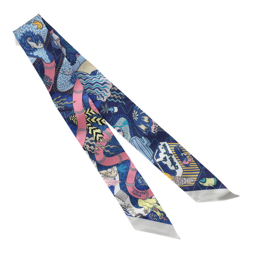 Hermes "Sous Le Charme D'Orphee" Marine Silk Twilly