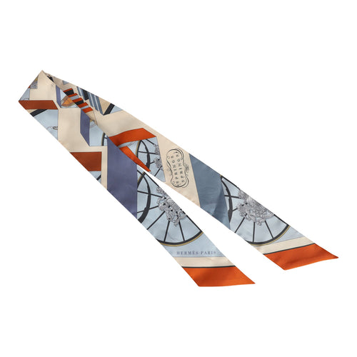 Hermes "Space Derby" Creme and Bleu Multi Silk Twilly Pair