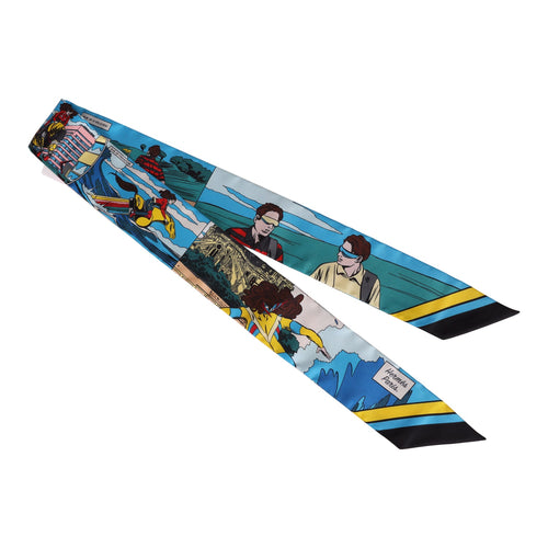 Hermes "WOW" Silk Twilly in a bleu azur and jaune colorway.Designed by Ugo Bienvenu.