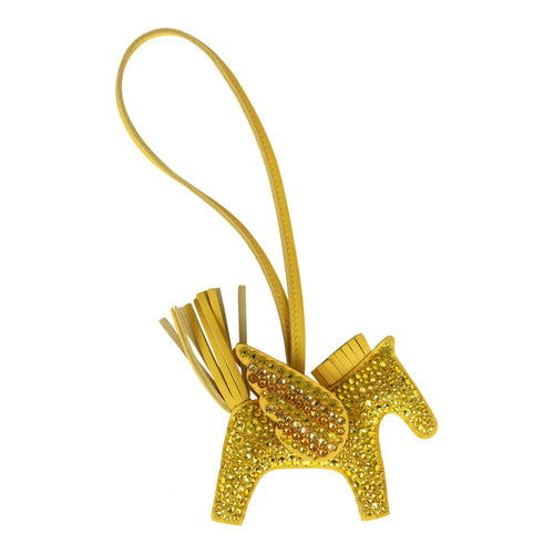 Custom Yellow Swarovski Crystal Hermes Pegase Bedazzled Rodeo Bag Charm PM Jaune Milton Milo Lambskin