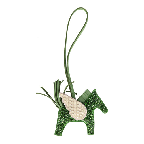 Custom Green Swarovski Crystal Hermes Pegasus Rodeo Bag Charm PM Vert Yucca/Vert Criquet/Mauve Pale Milo Lambskin