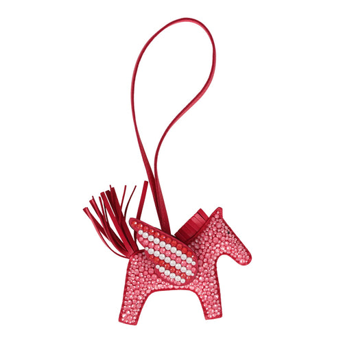 Custom Red Swarovski Crystal Hermes Bedazzled Pegase Rodeo Bag Charm PM Rouge Grenat/Bleu Brume/Cornaline Milo Lambskin