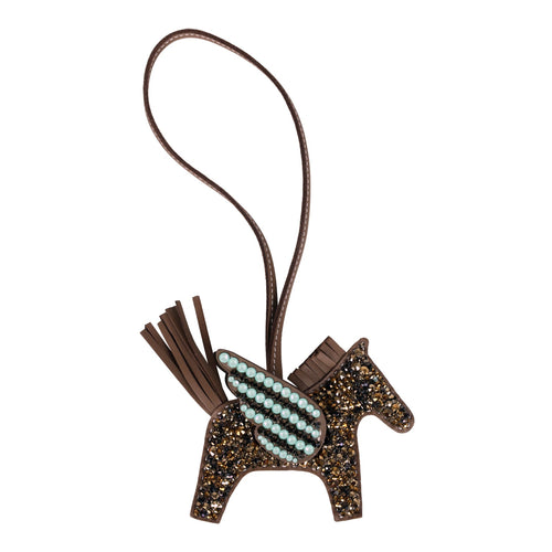 This Hermes Bedazzled Pegase Rodeo Bag Charm PM is of Etoupe swift and Milo lambskin leather and is accented with a Etoupe mane, tail, eye and wings. This bag charm is beaded in bronze and black Swarovski crystals with back...