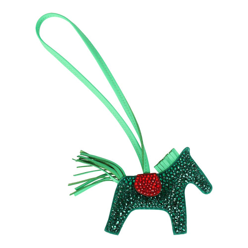 Custom Green Swarovski Crystal Hermes Bedazzled Pegase Rodeo Bag Charm PM Vert Comics Milo Lambskin