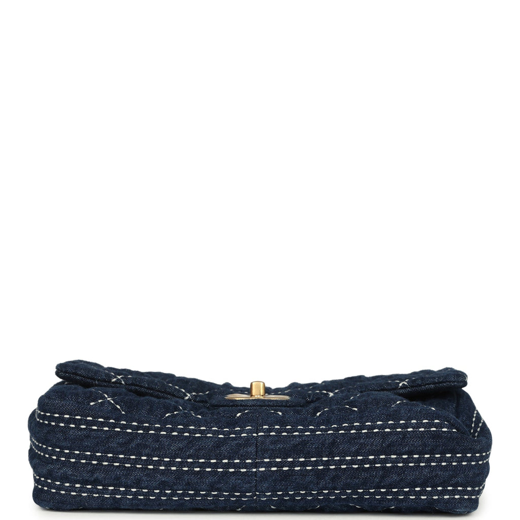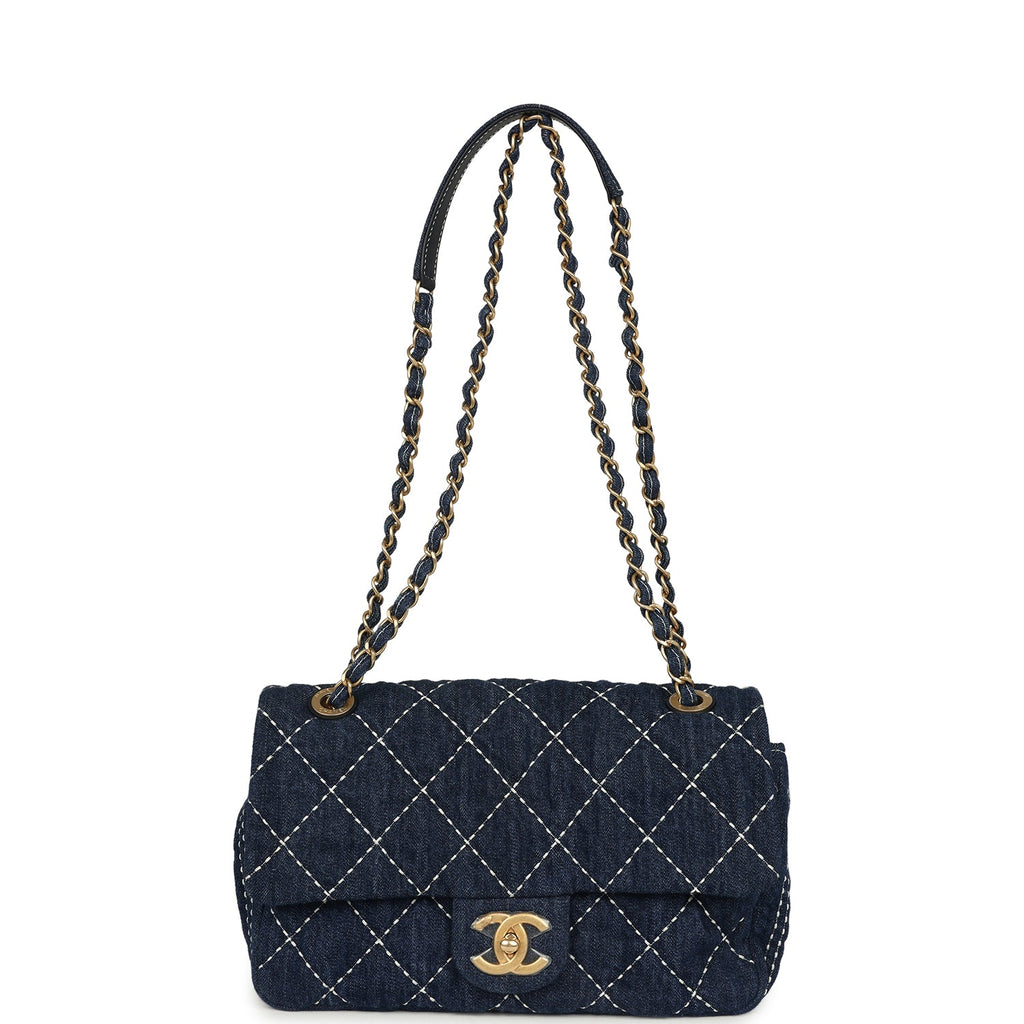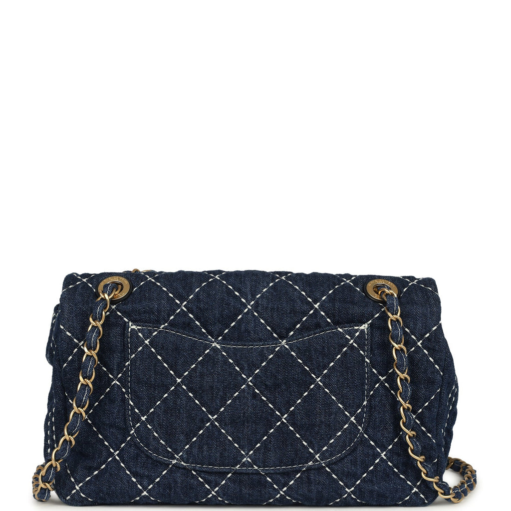 Pre-owned Chanel Medium Classic Flap Bag Blue Denim Aged Gold Hardware