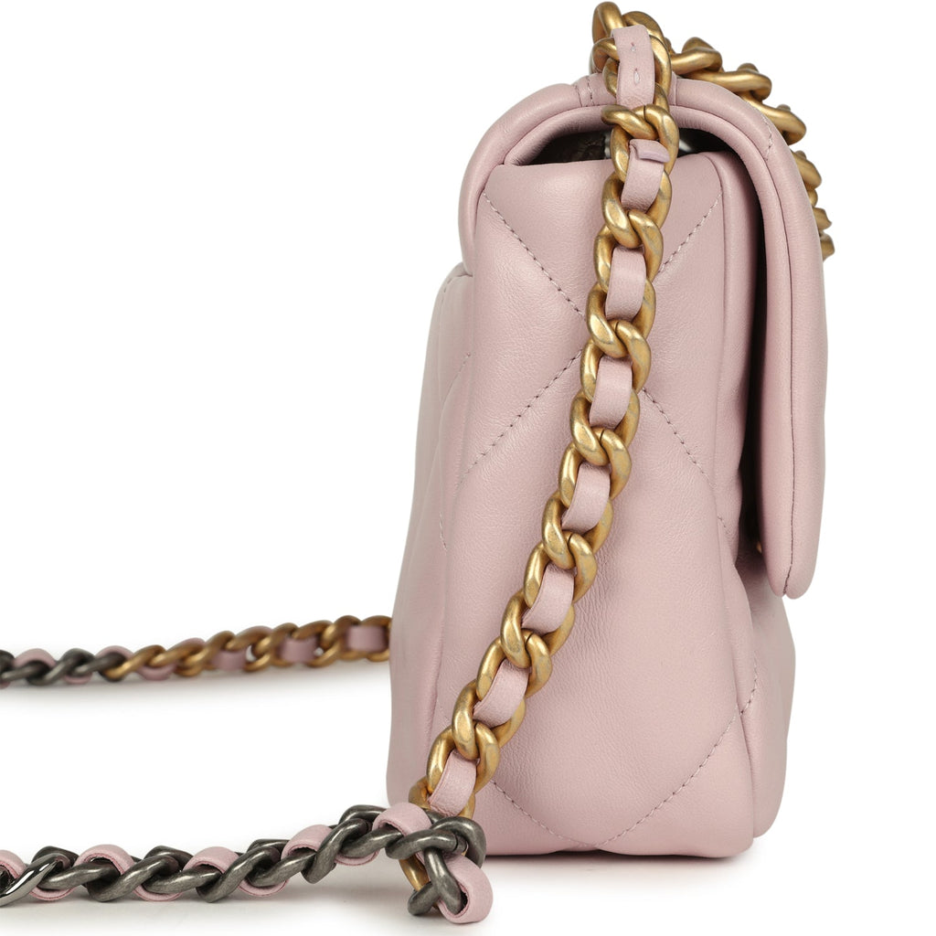 Chanel Medium 19 Flap Bag Light Pink Shiny Lambskin Mixed Metal Hardware