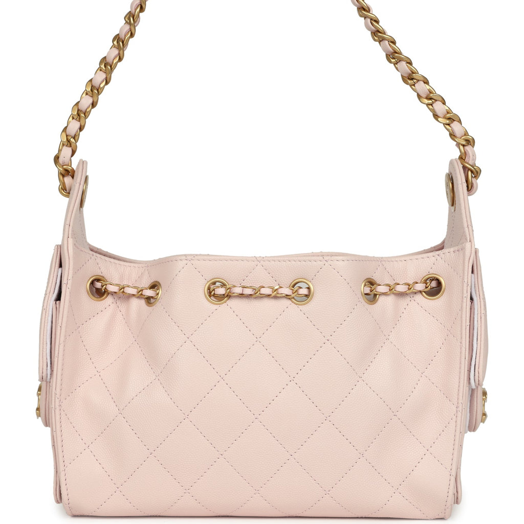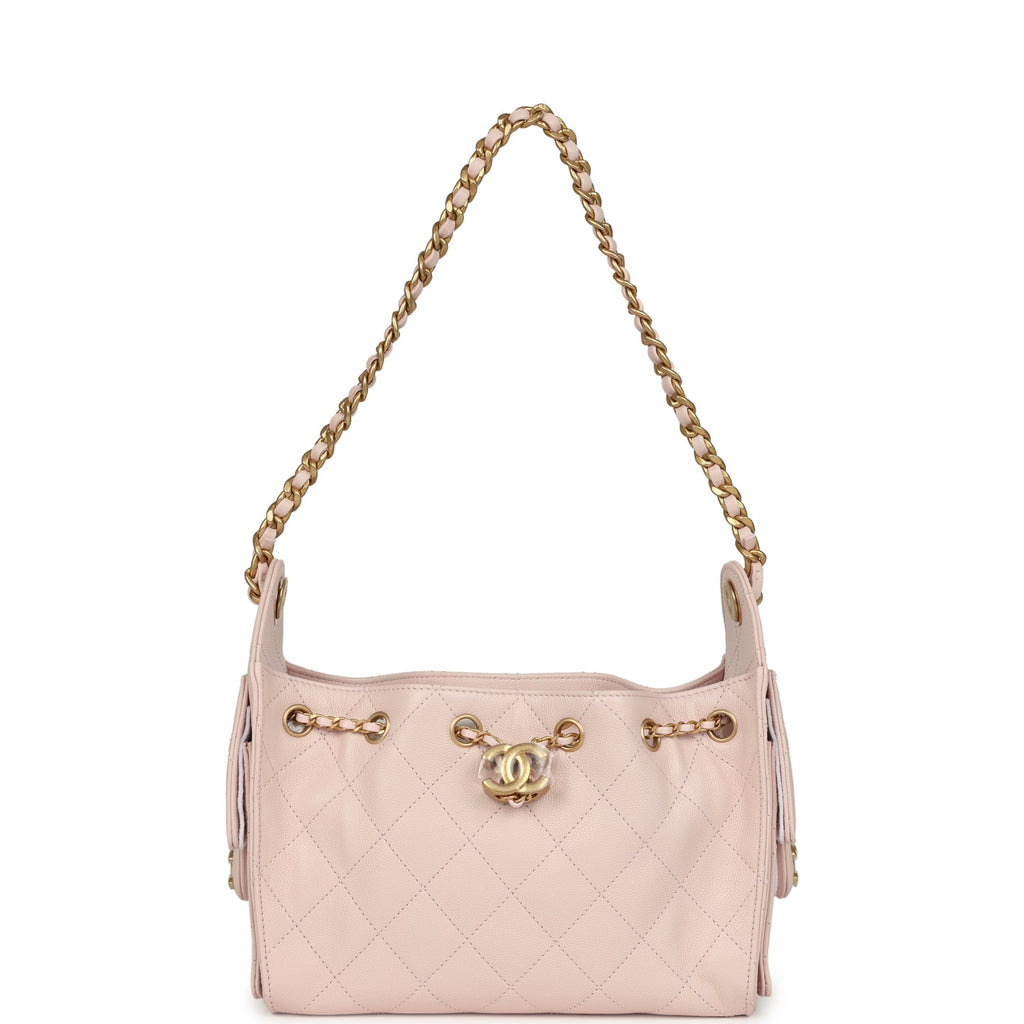 Chanel Mini 25 Hobo Bag Light Pink Caviar Antique Gold Hardware