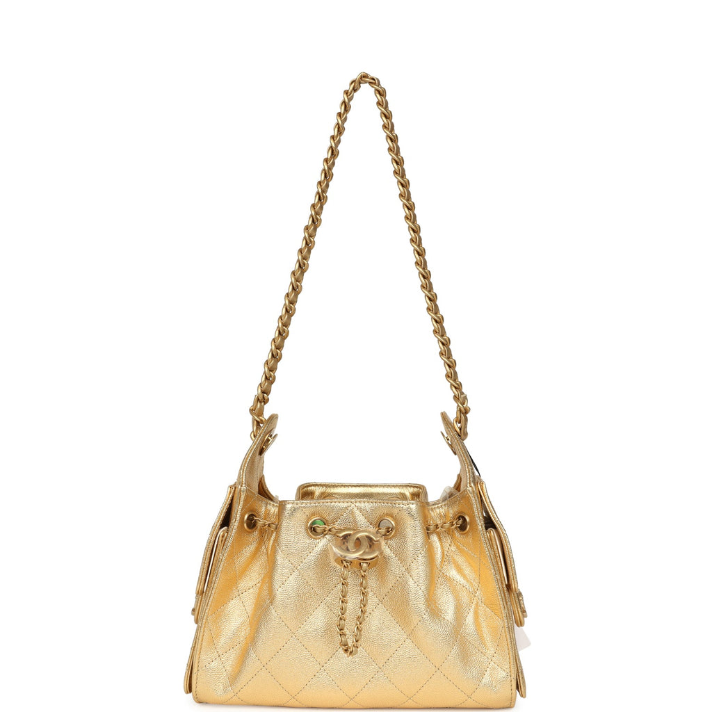 Chanel Mini 25 Hobo Bag Metallic Gold Caviar Caviar Antique Gold Hardware