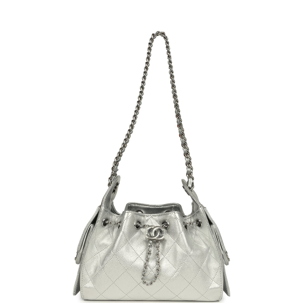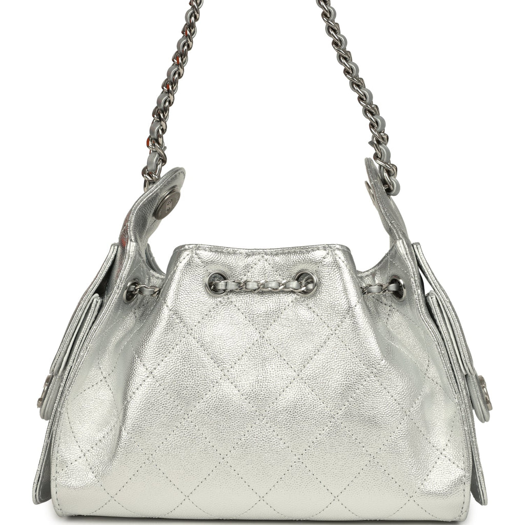 Chanel Mini 25 Hobo Bag Metallic Silver Caviar Silver Hardware