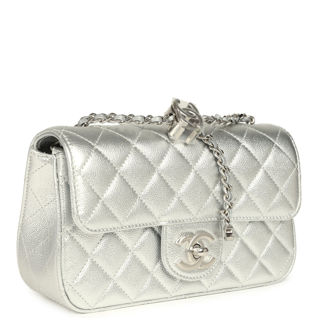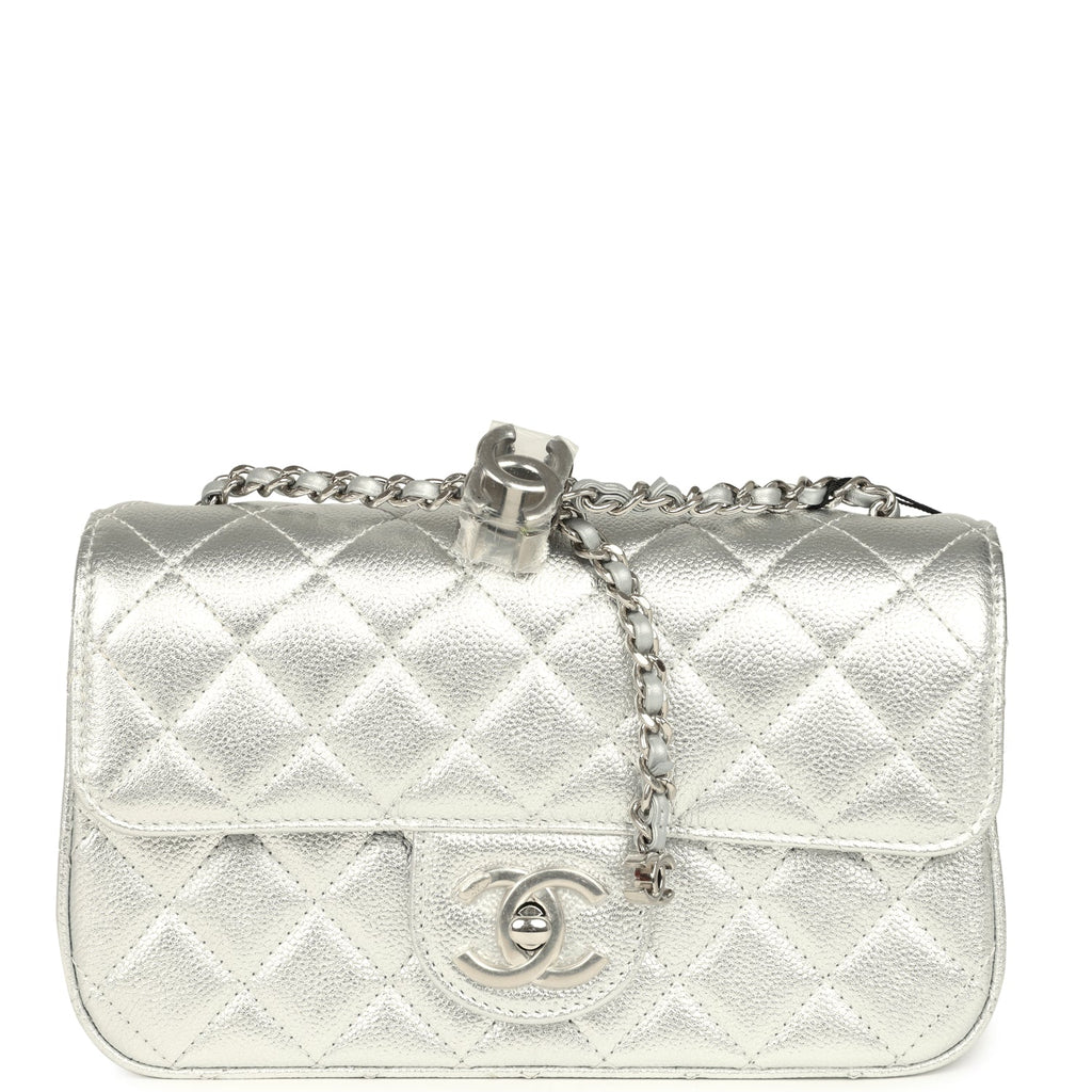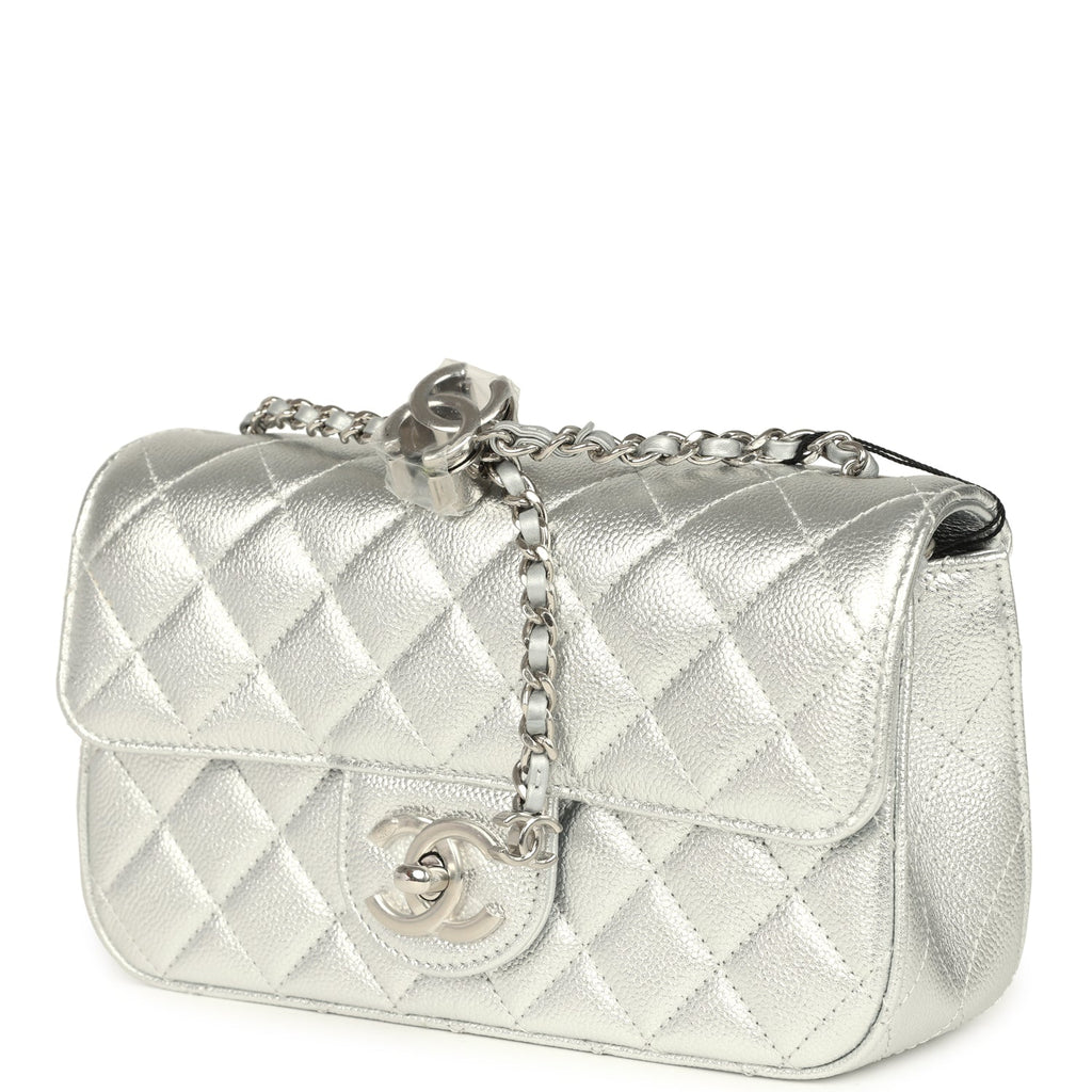 Chanel Mini CC Crush Flap Bag Silver Metallic Caviar Silver Hardware