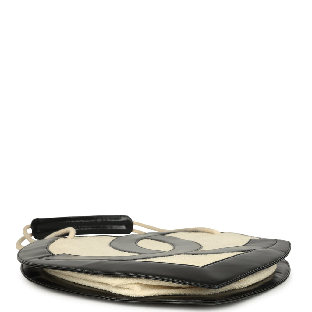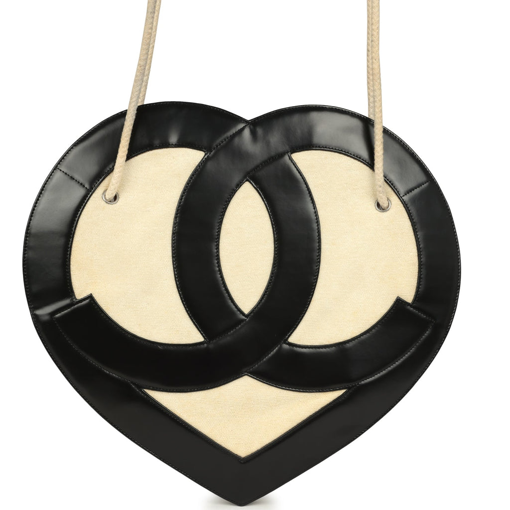 Pre-owned Chanel Jumbo Heart Tote Bag Cream Terry Cloth and Black Lambskin Silver Hardware