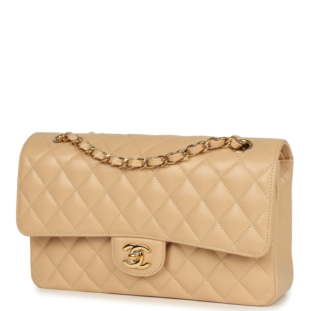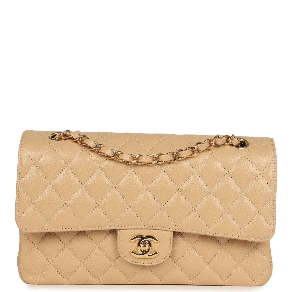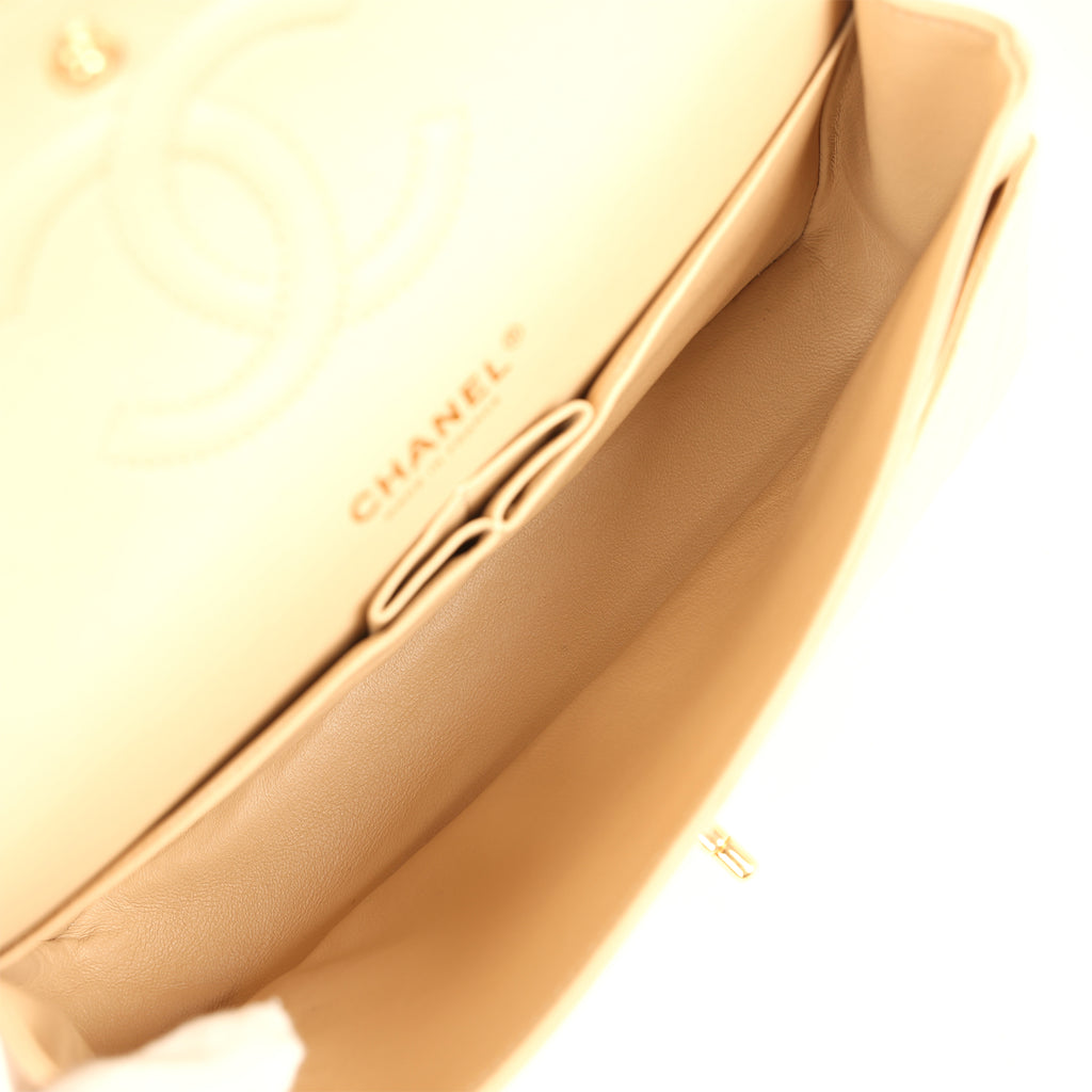 Pre-owned Chanel Medium Classic Double Flap Beige Caviar Gold Hardware