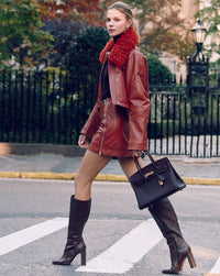 This GeeGee Savannah bag charm is in Carnelian and Orange Poppy Milo lambskin leather and Serie accents .