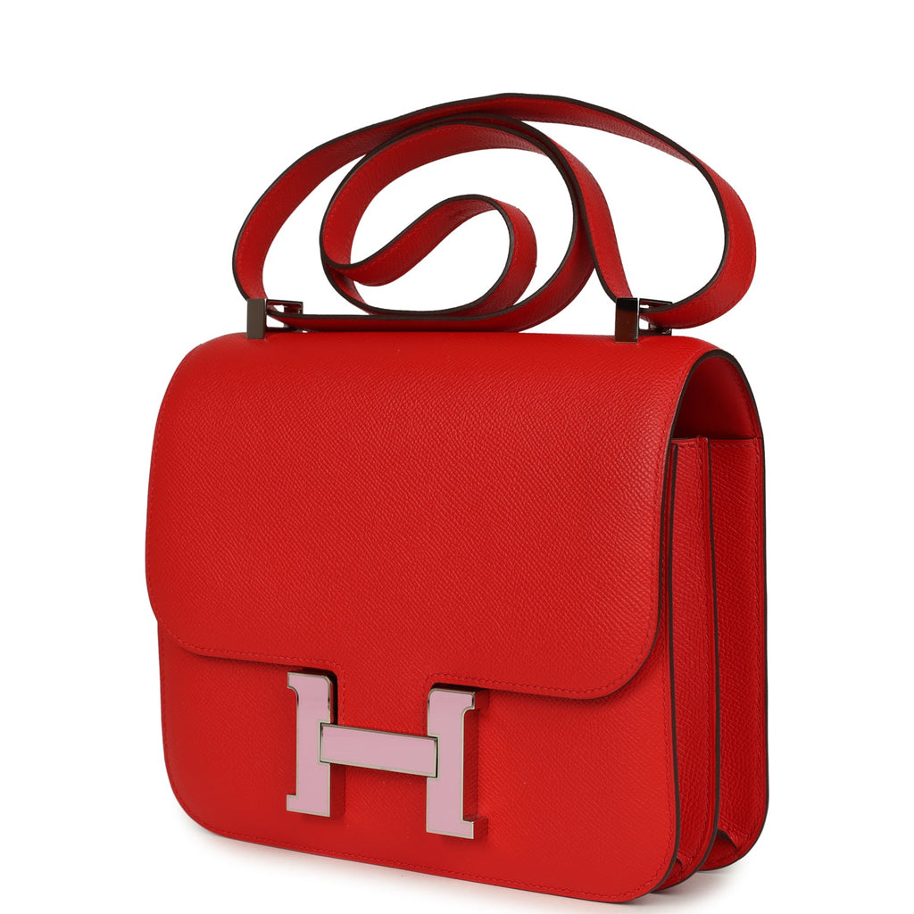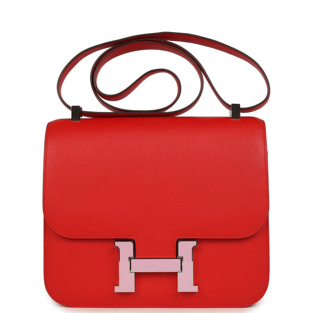 Pre-owned Hermes Constance 24 Rouge De Coeur Epsom Lacquered Palladium Hardware