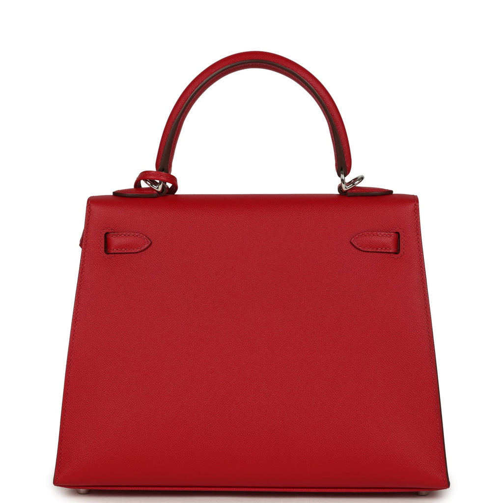 Hermes Kelly Sellier 25 Rouge Piment Verso Madame Palladium Hardware