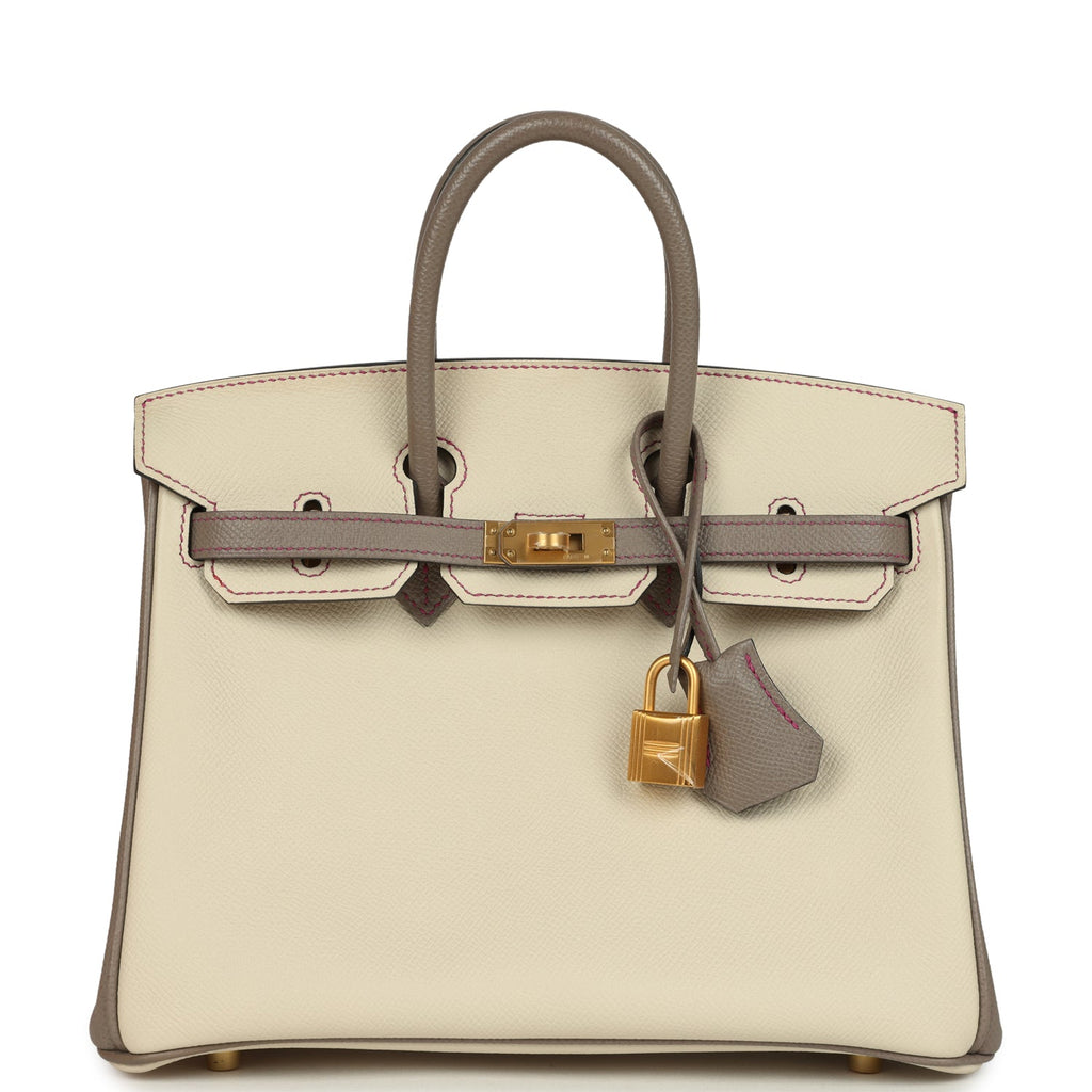 Hermes Special Order (HSS) Birkin 25 Craie and Gris Asphalte Epsom Brushed Palladium Hardware