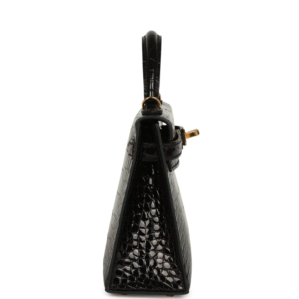 Hermes Kelly Sellier 20 Black Shiny Alligator Gold Hardware