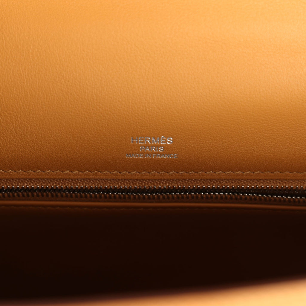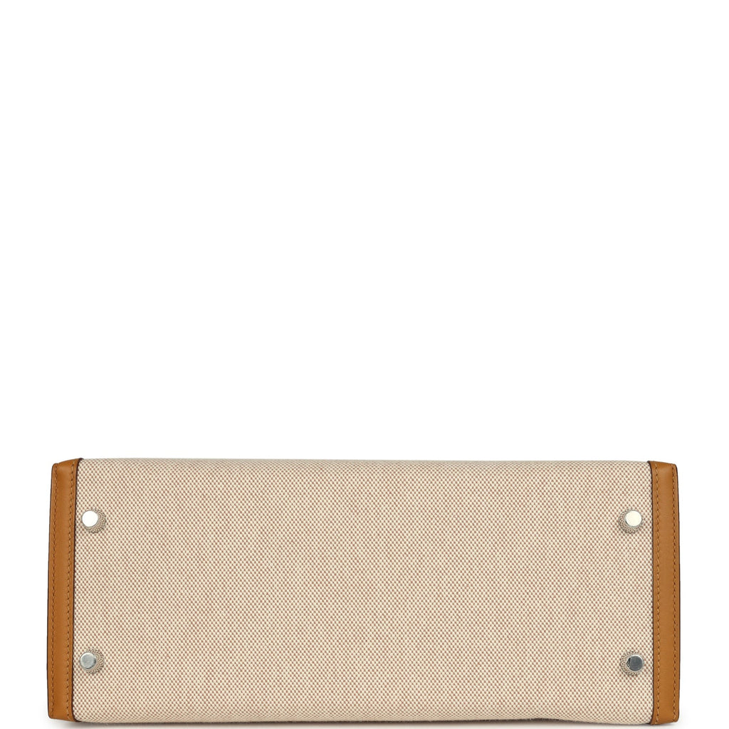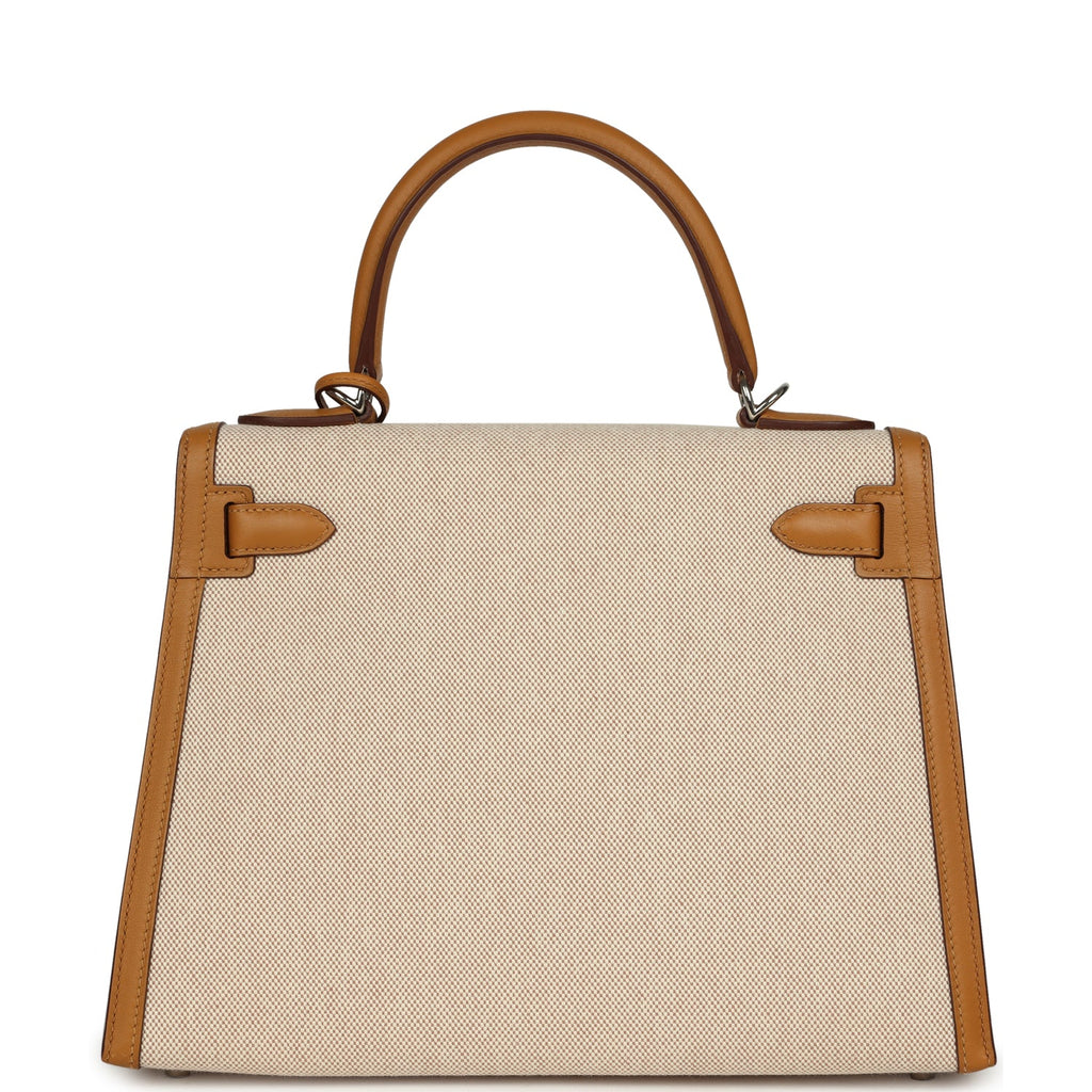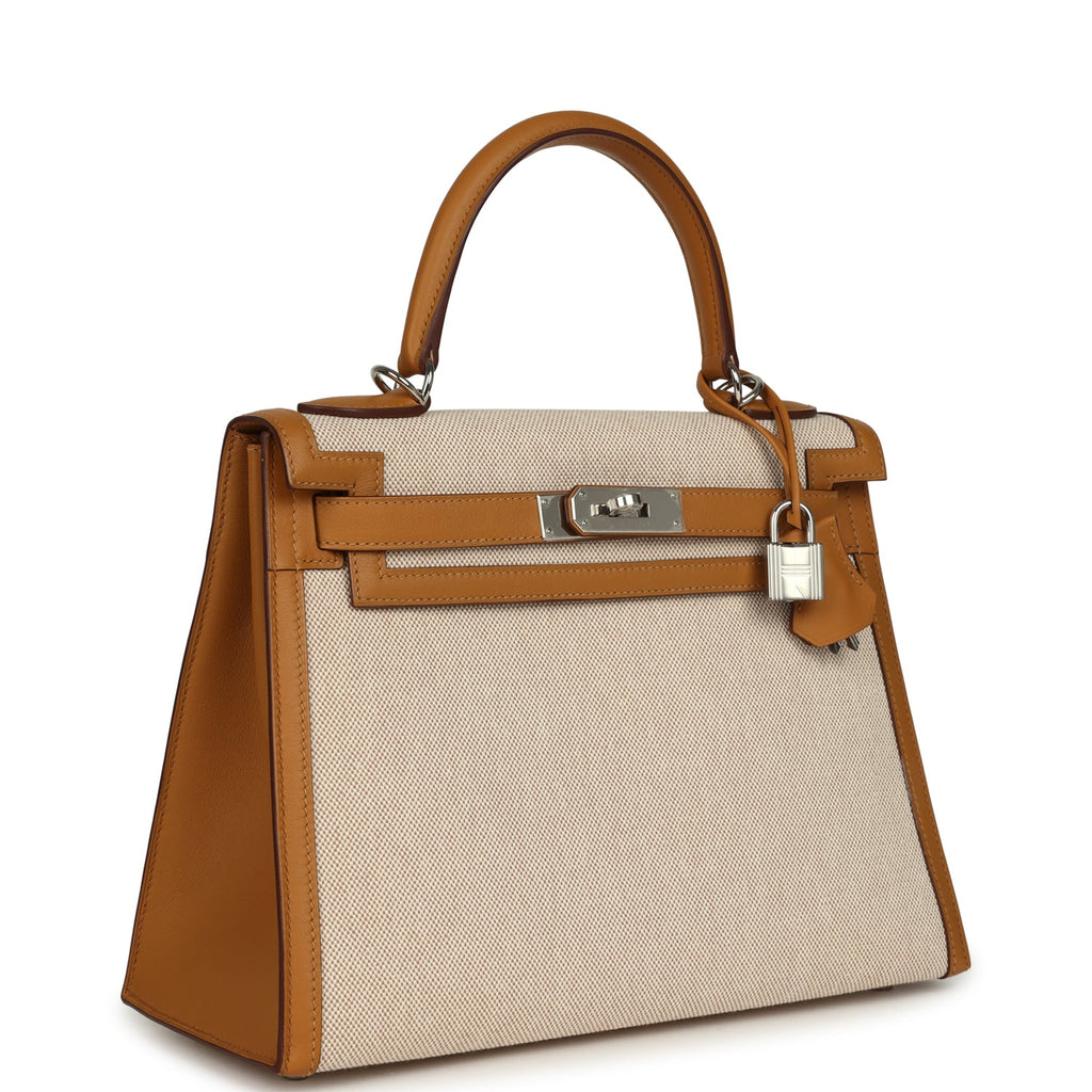 Pre-owned Hermes Kelly Sellier 28 Beige & Ecru Toile H Canvas and Sesame Swift Palladium Hardware