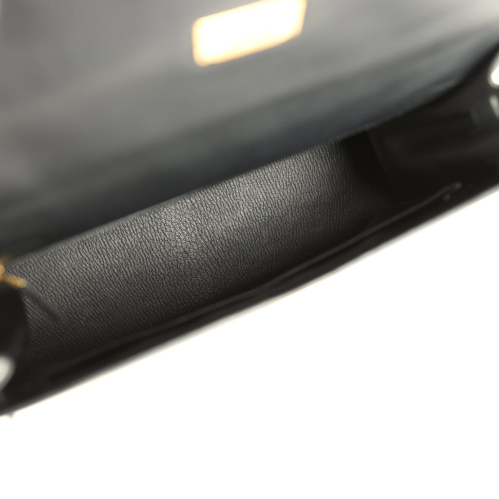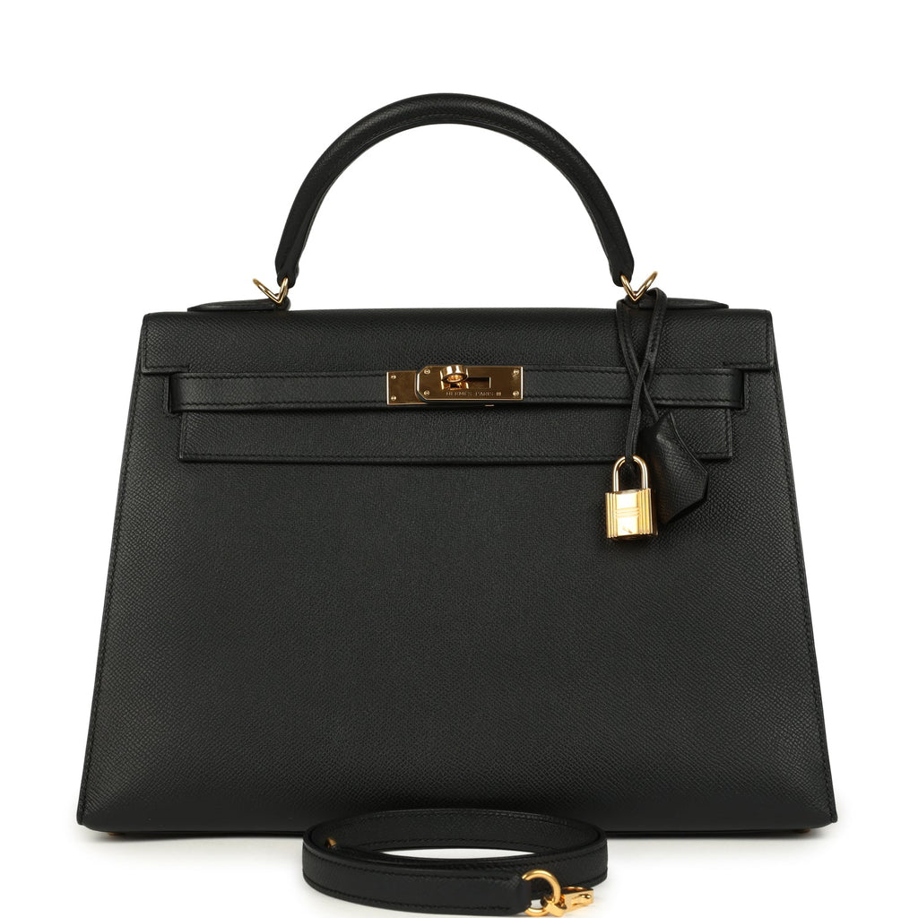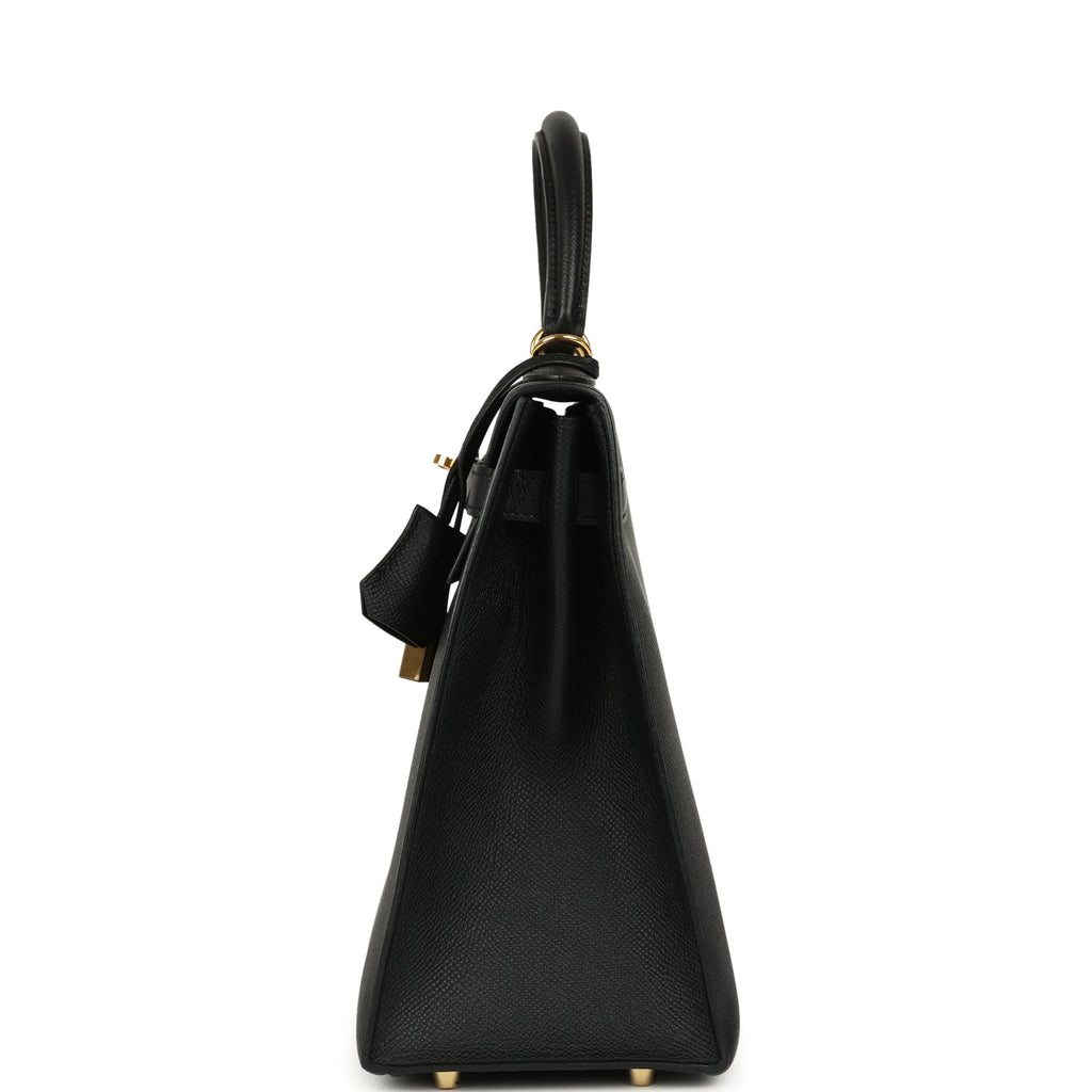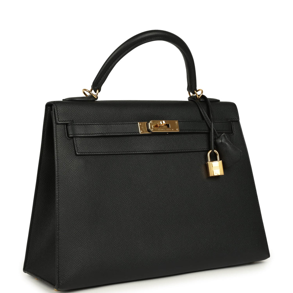 Pre-owned Hermes Kelly Sellier 32 Black Epsom Gold Hardware