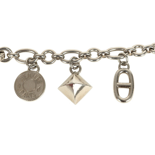 This Hermes Farandole Rope necklace is in sterling silver hardware, featuring a 80cm length necklace with sterling silver chaine d'ancre motif links in different sizes and has a bar and toggle closure.Origin: ItalyCondition: Pre-owned; Mint - This necklace has light...