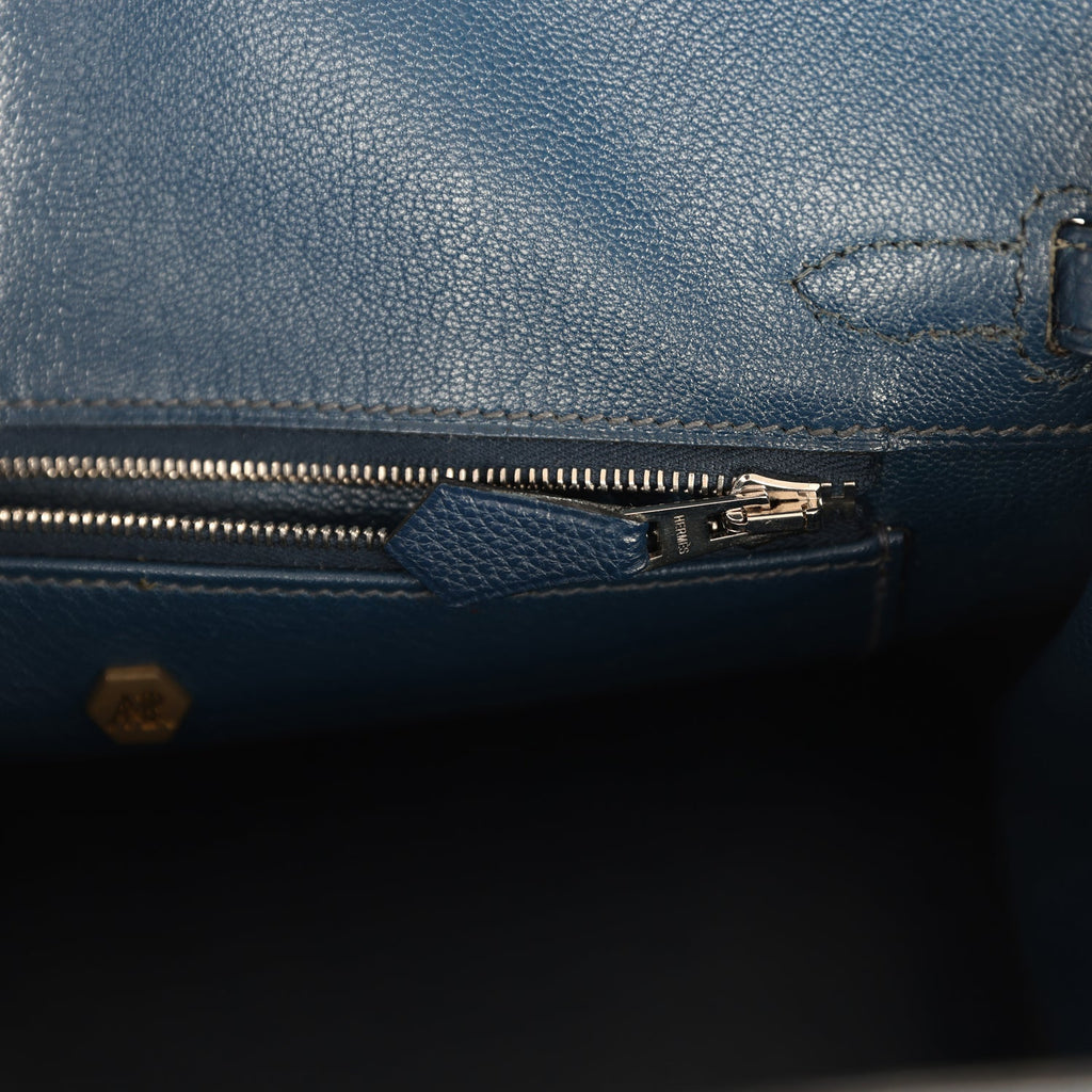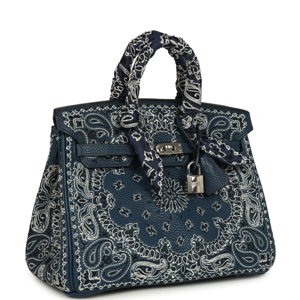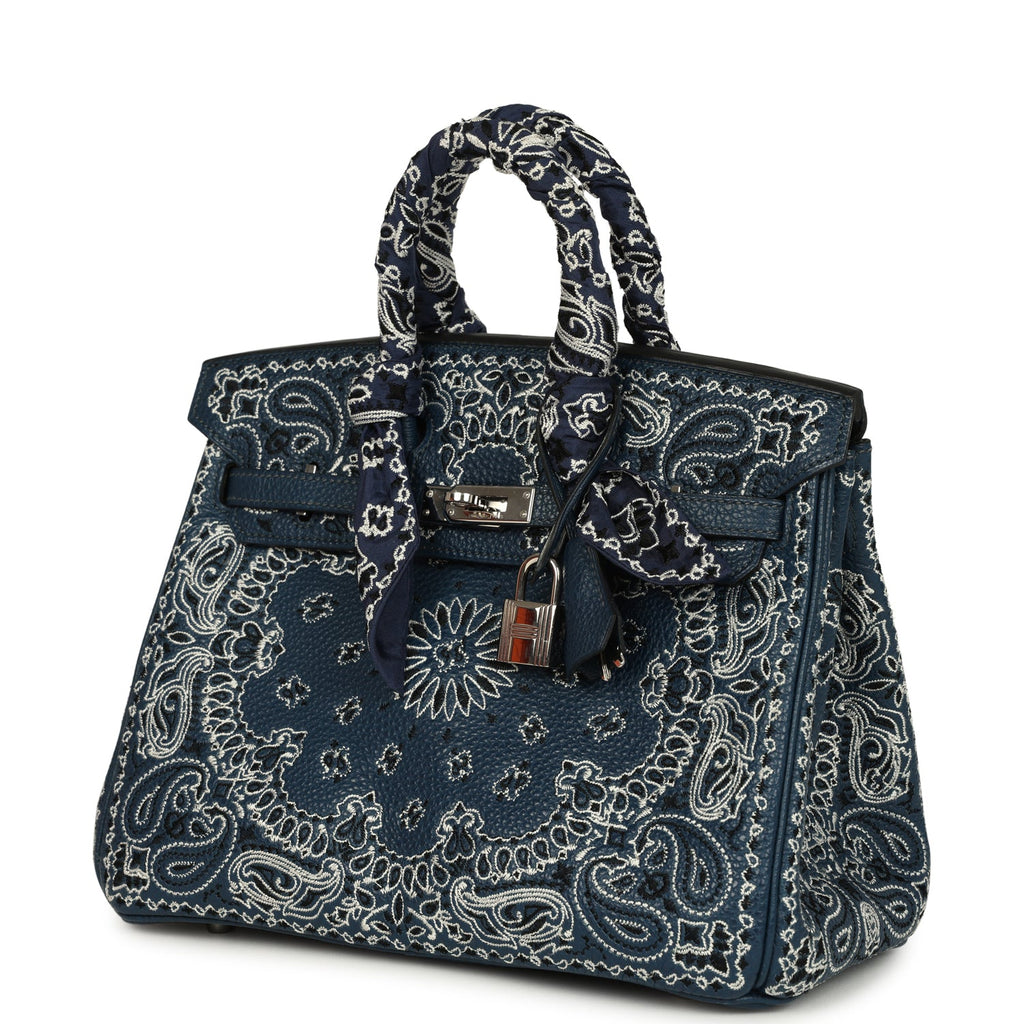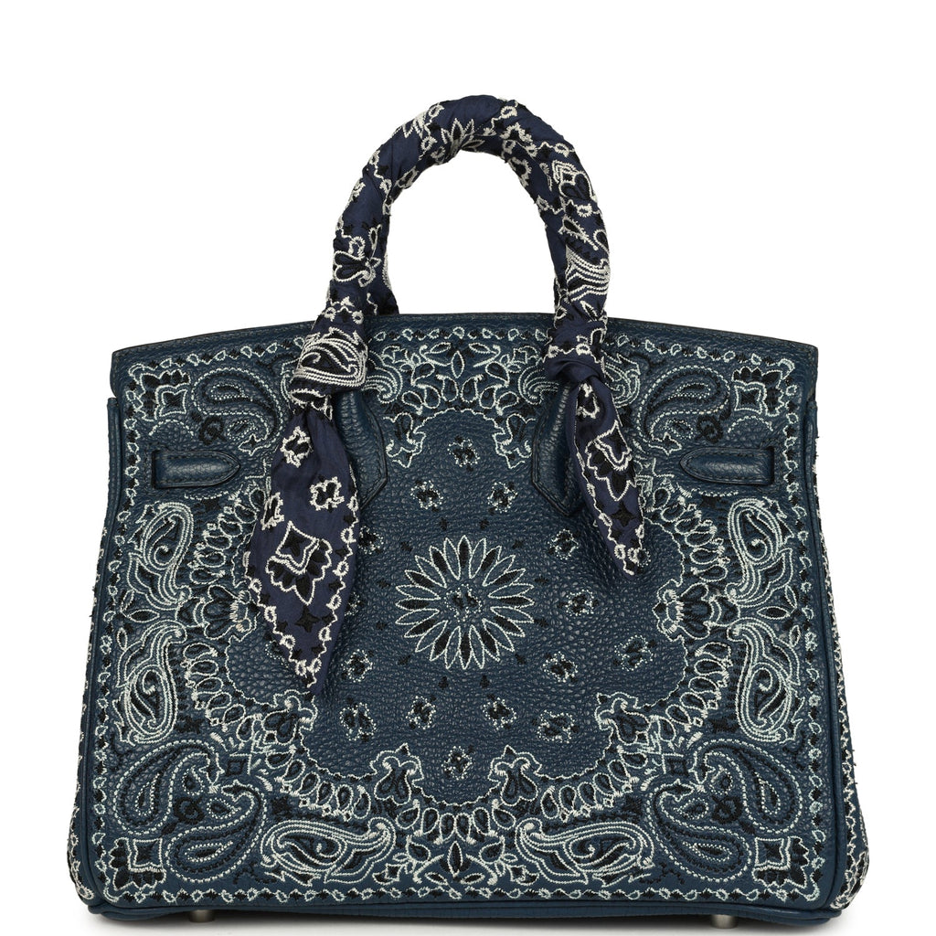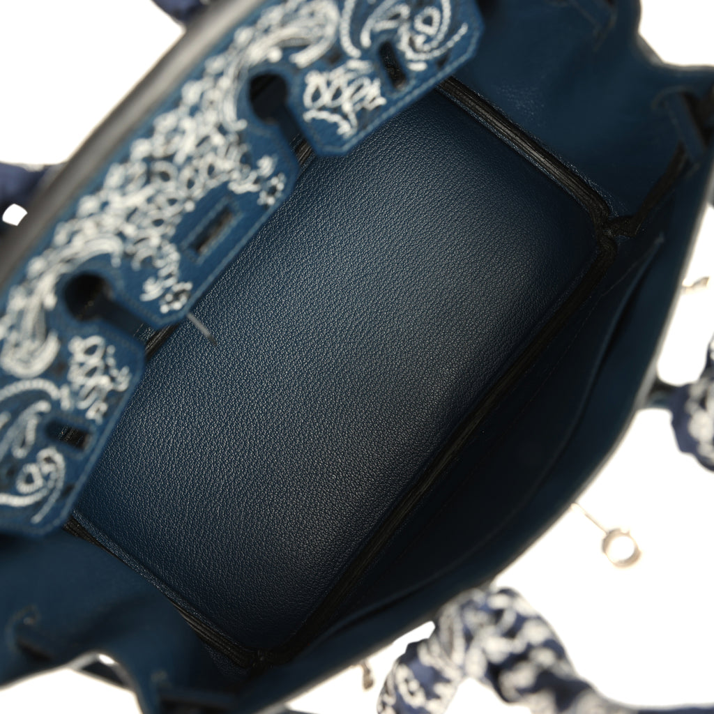 Pre-owned Jay Ahr Hermes Birkin 25 Bleu de Prusse Togo with Bandana Embroidery Palladium Hardware Payment 2