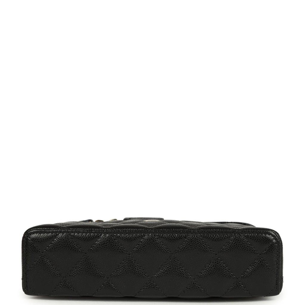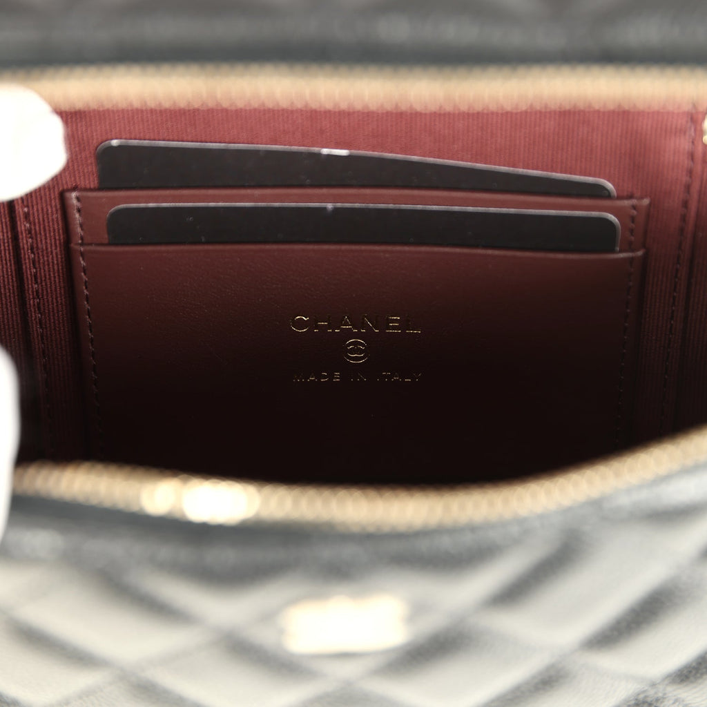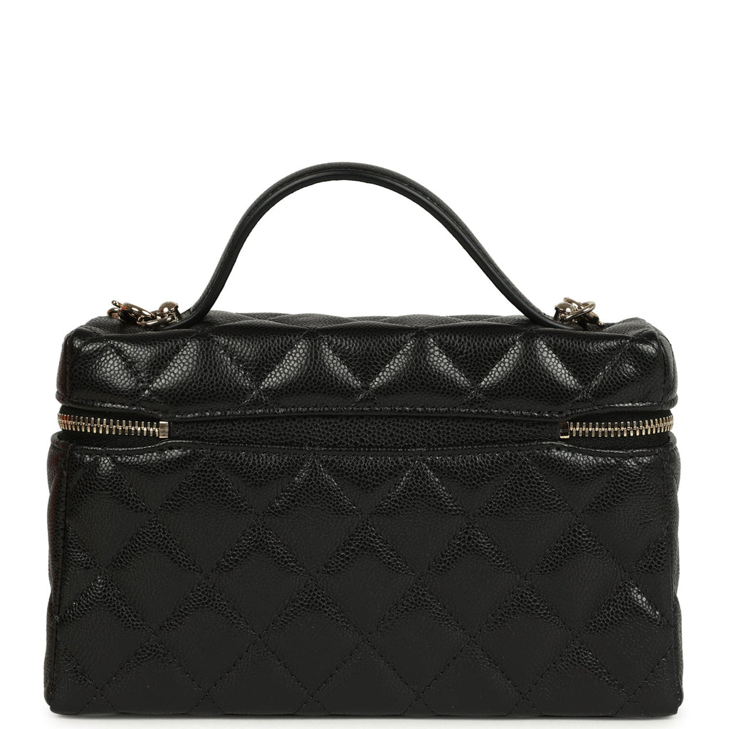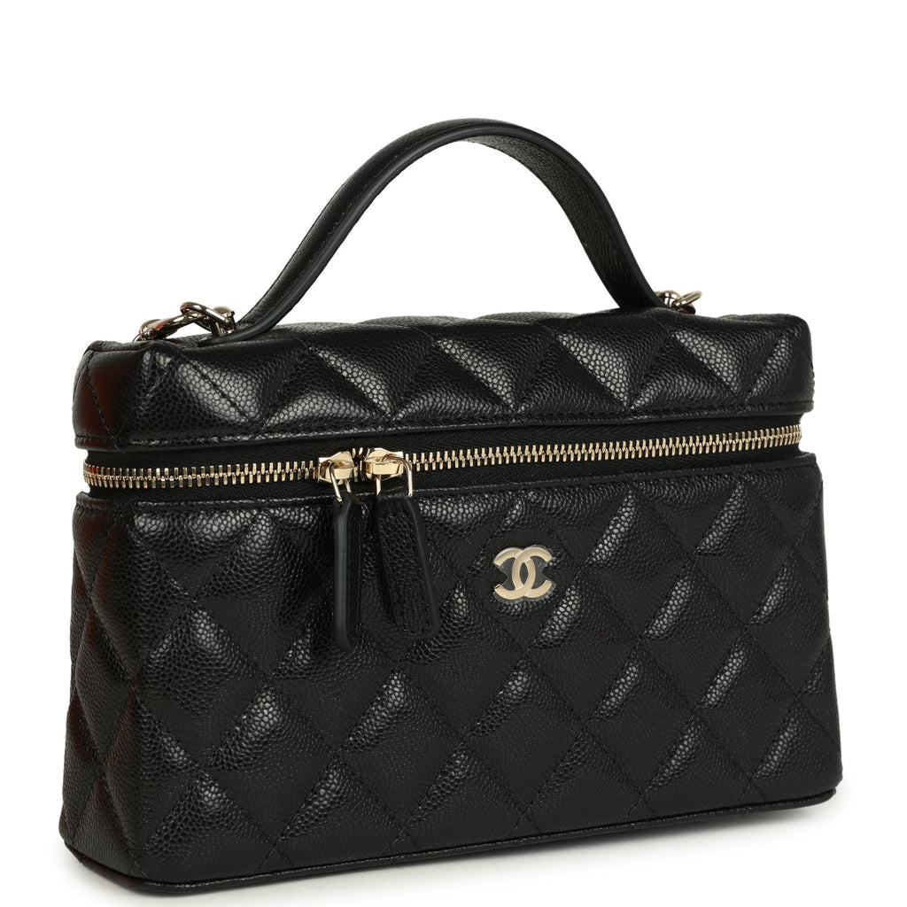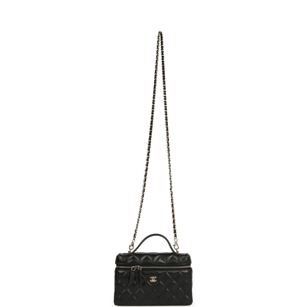 Chanel Top Handle Long Vanity Case with Chain Black Shiny Caviar Light Gold Hardware