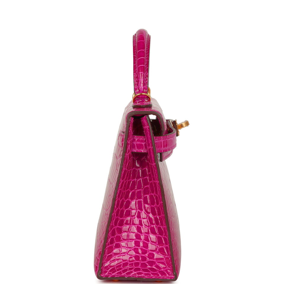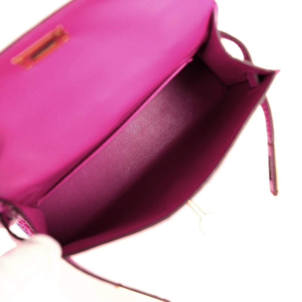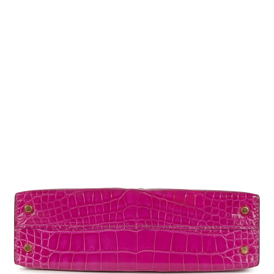 Pre-owned Hermes Kelly Sellier 20 Rose Scheherazade Shiny Alligator Gold Hardware
