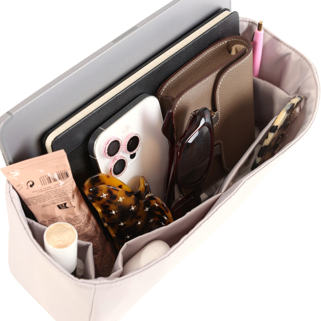 Crafted from premium light grey oxford fabric, the Bag Bestie is liquid-resistant, machine washable, lightweight, and structured to help your handbag retain its iconic shape. Its natural bend design allows the organizer to contour to the interior of the bag, preserving a creaseless, pristine look.