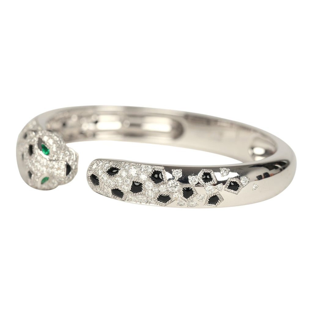 Cartier Panthere De Cartier Medium Half-Pave Bracelet Onyx & Diamonds 18K White Gold Hardware