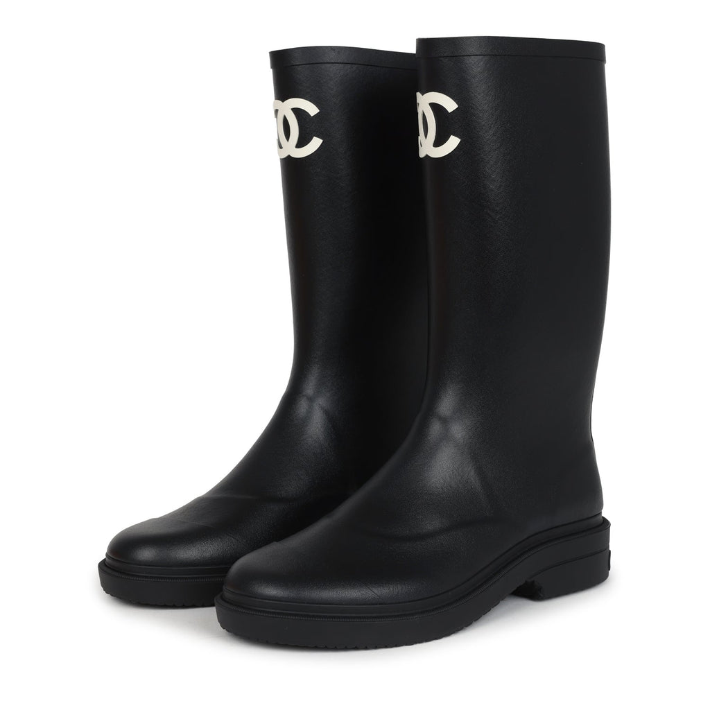 Chanel Black High Caoutchouc CC Boots EU 40