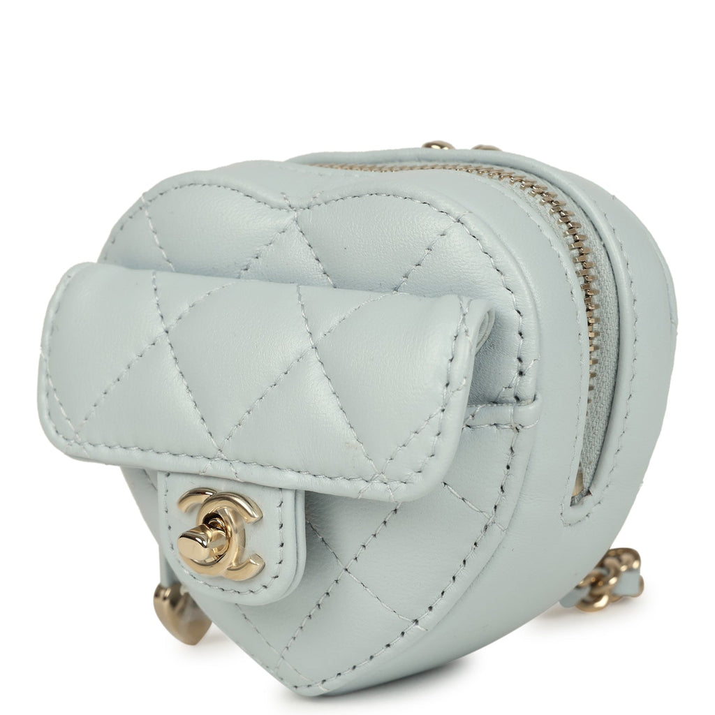 Chanel CC In Love Heart Charm Light Blue Lambskin Light Gold Hardware