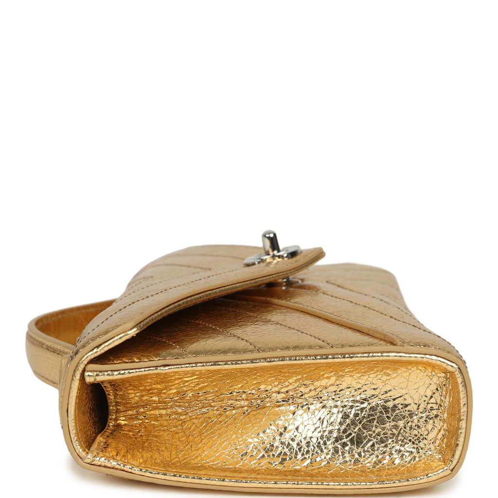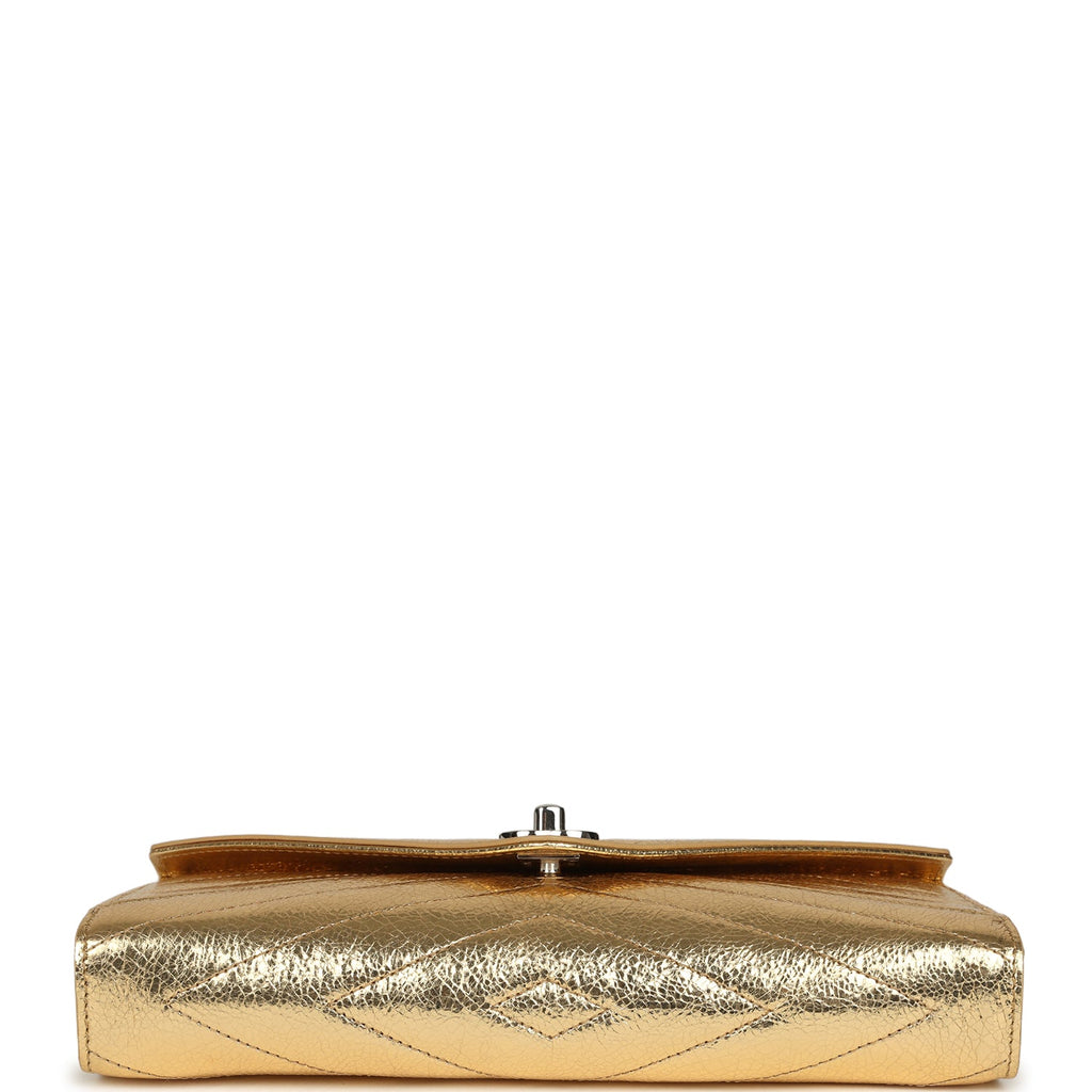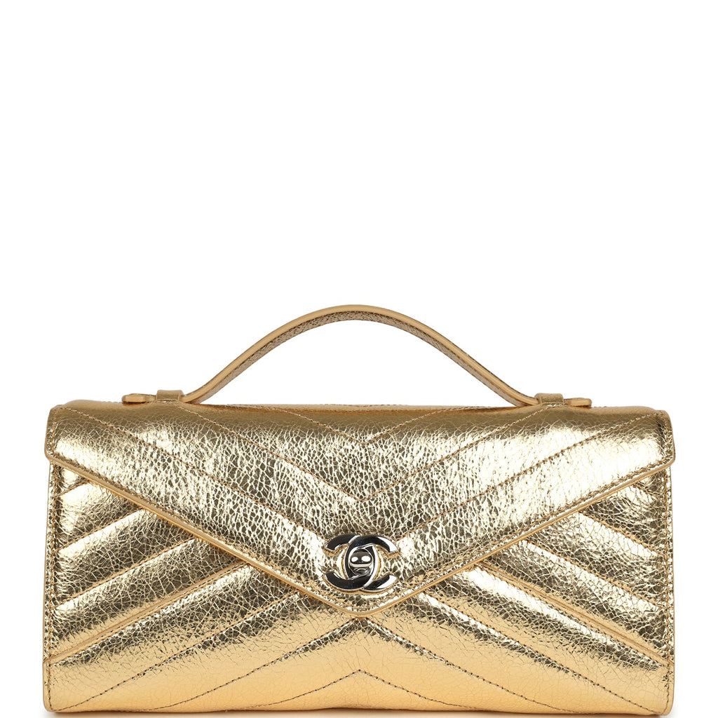 Chanel Chevron Clutch Metallic Gold Aged Calfskin Silver Hardware