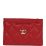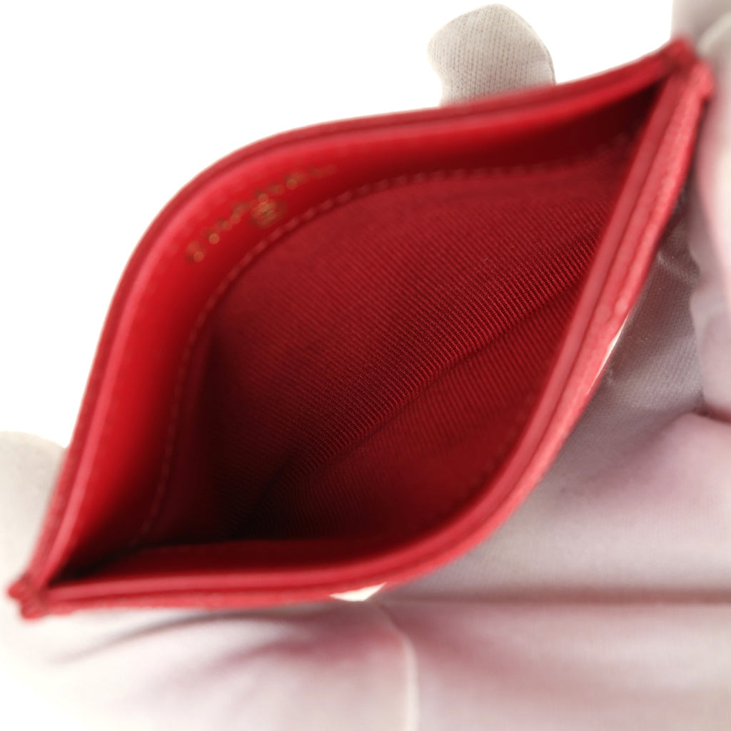Chanel Classic Card Holder Wallet Red Shiny Caviar Light Gold Hardware