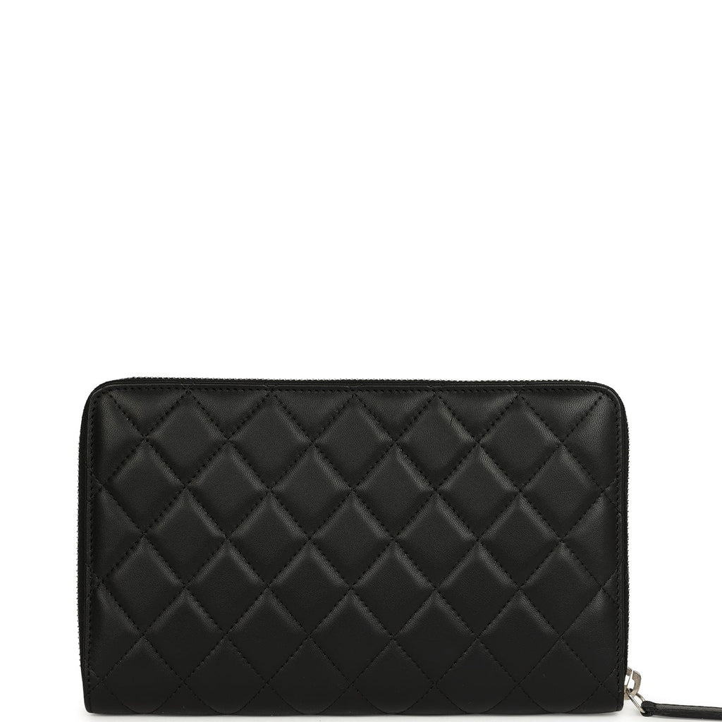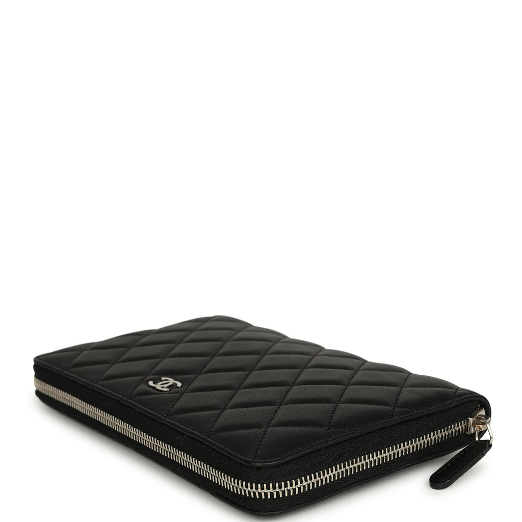 Chanel Classic Organizer Zip Wallet Black Lambskin Silver Hardware