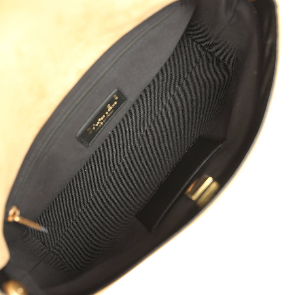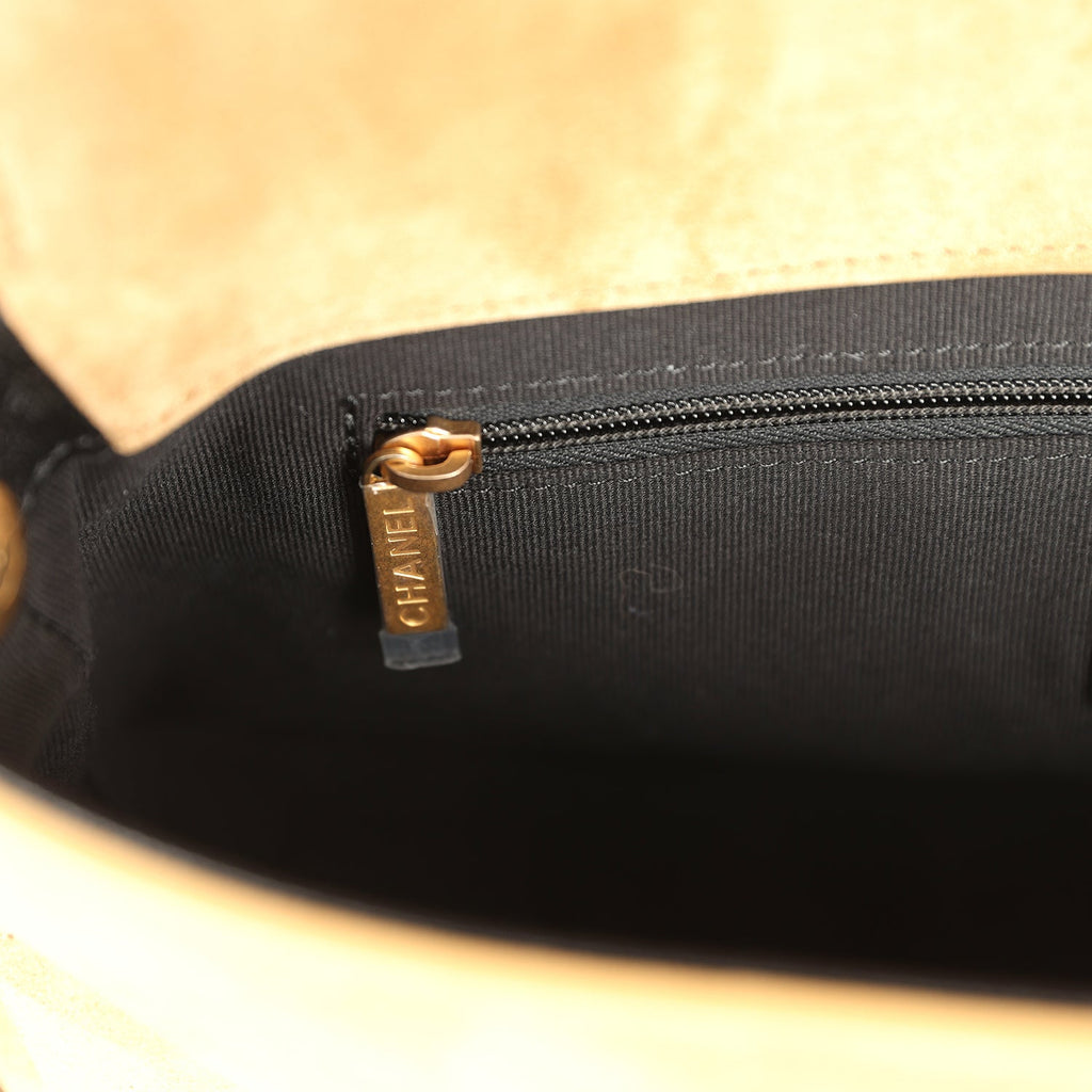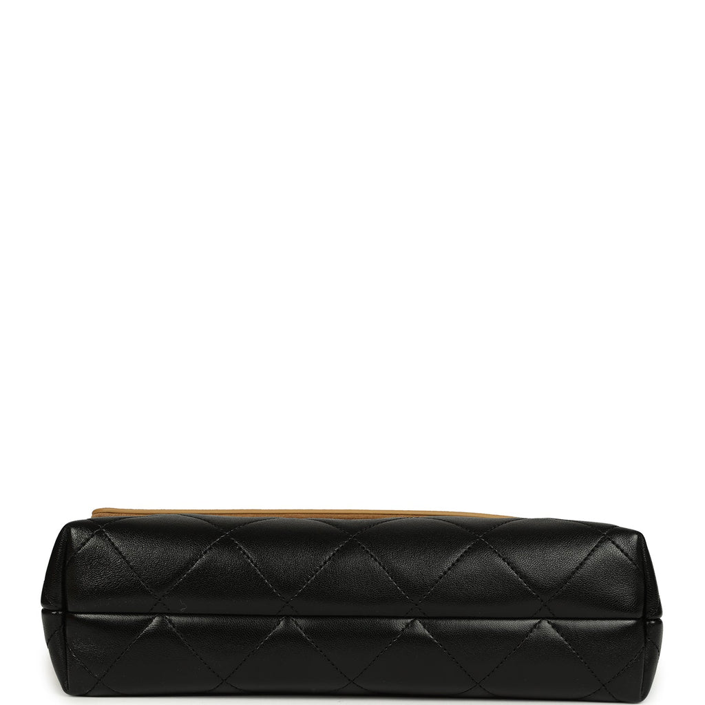 Chanel Coco Base Top Handle Flap Bag Brown Suede and Black Shiny Lambskin Brushed Gold Hardware